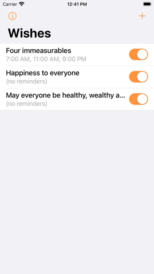 By default, 4 unlimited wishes are added in the application, but you can create your own list from any wishes.