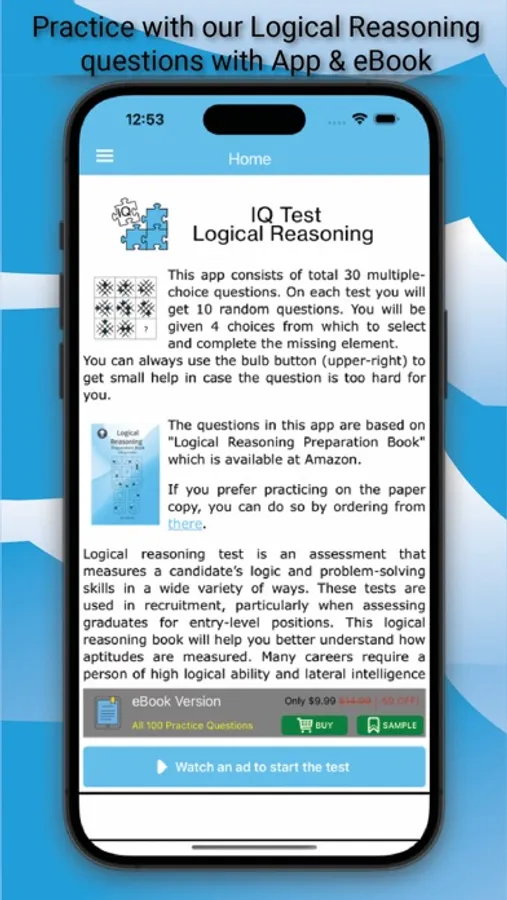 This logical reasoning app will help you better understand how aptitudes are measured. Many careers require a person of high logical ability and lateral intelligence making logical reasoning tests fairly popular with employers.