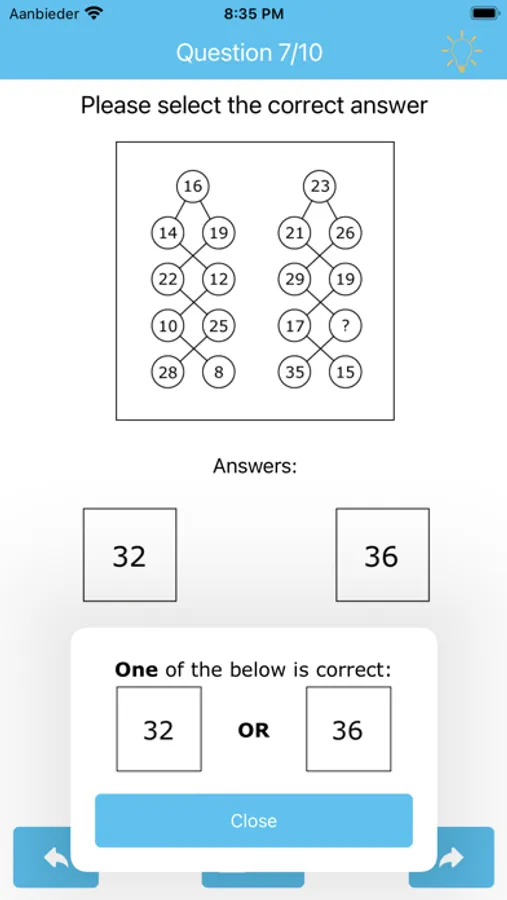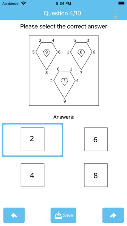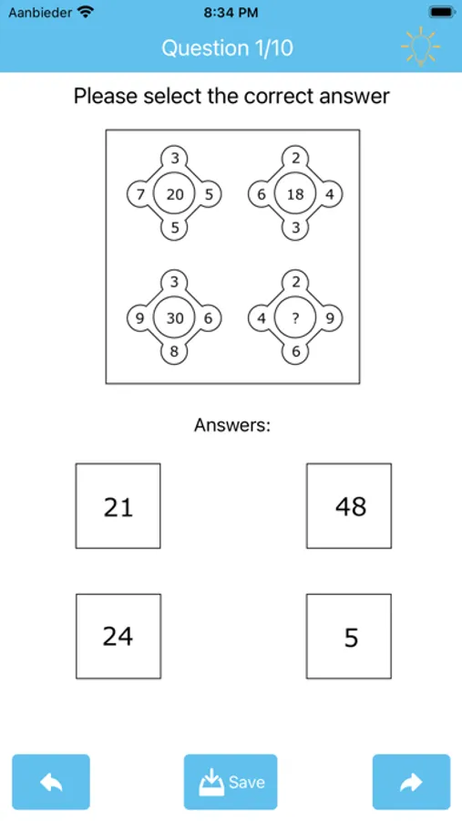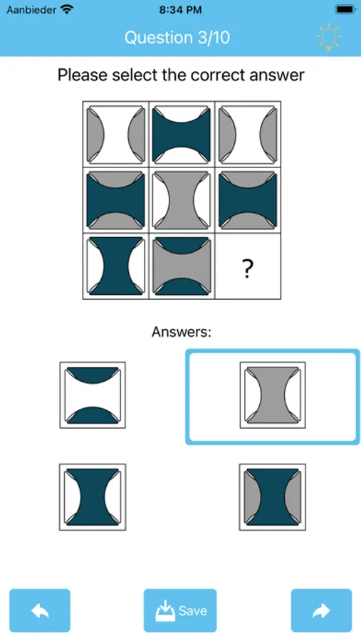 This app consists of total 30 multiple-choice questions. On each test you will get 10 random questions. You will be given 4 choices from which to select and complete the missing element.