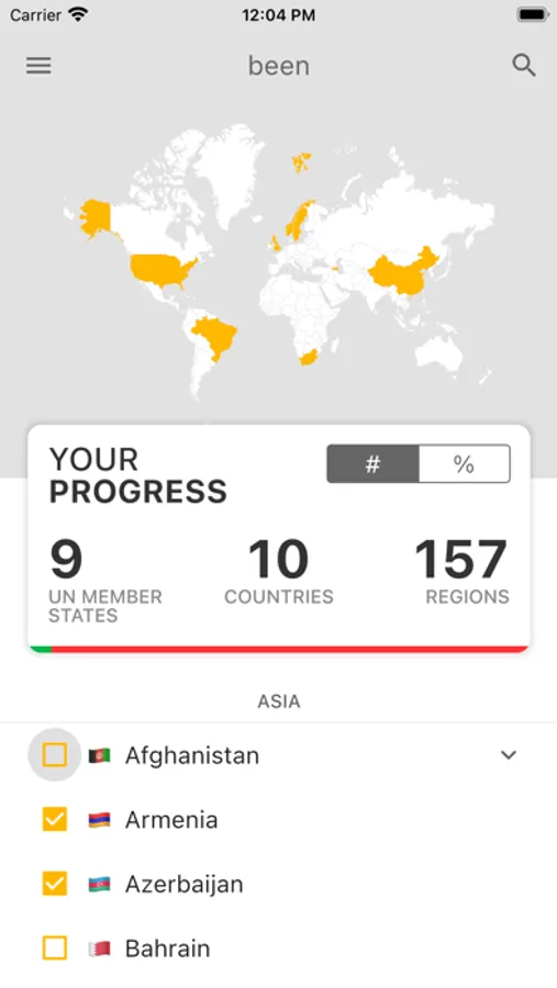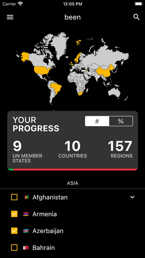 Select which countries you've visited, and the map will visualise where you've been in the world. You can sign in so your map is updated across multiple devices. Future features will include ability to zoom in on the map, per country maps (to visualise regions you've visited) and others.