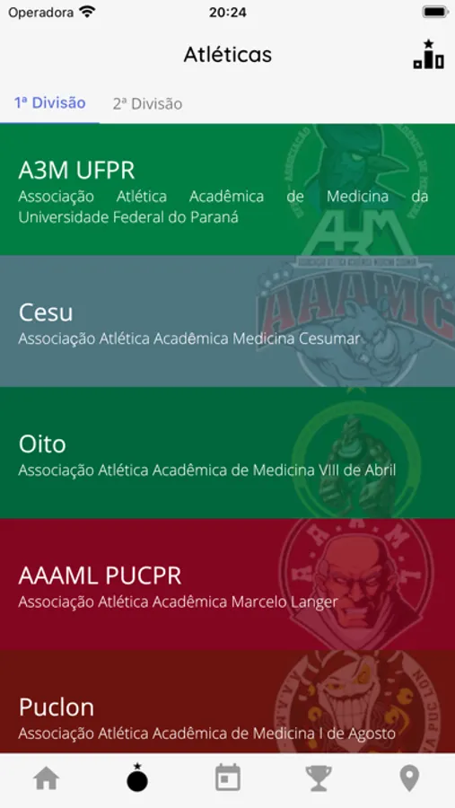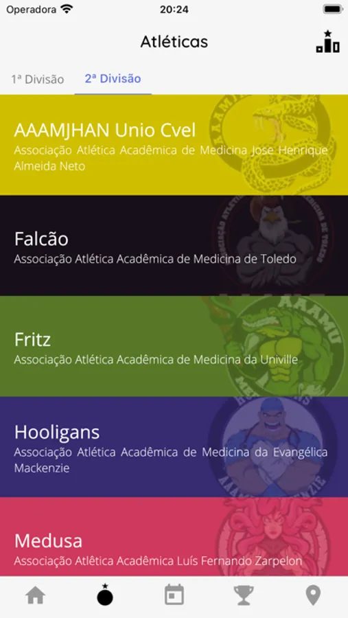 - Ver informações sobre as atléticas participantes e seus jogos