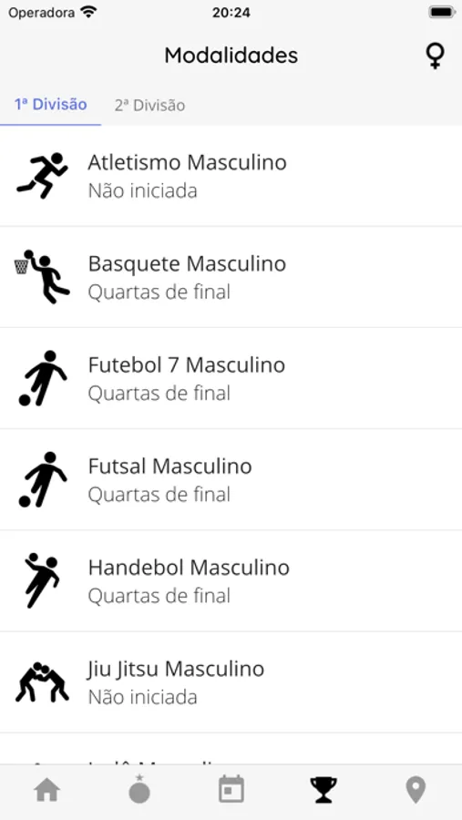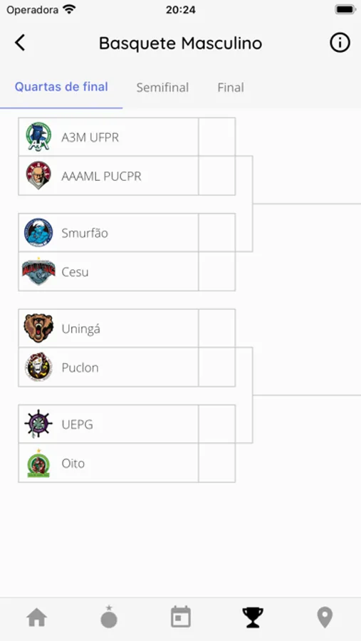- Ver o calendário de jogos da competição, chaveamento das modalidades e classificações