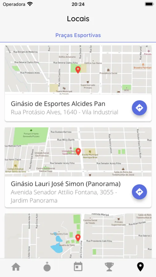 - Consultar os locais de jogos e obter rotas para eles