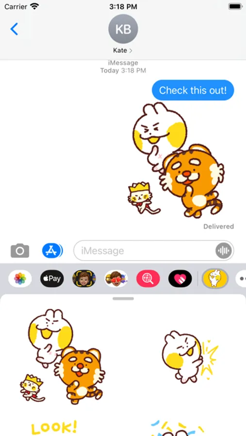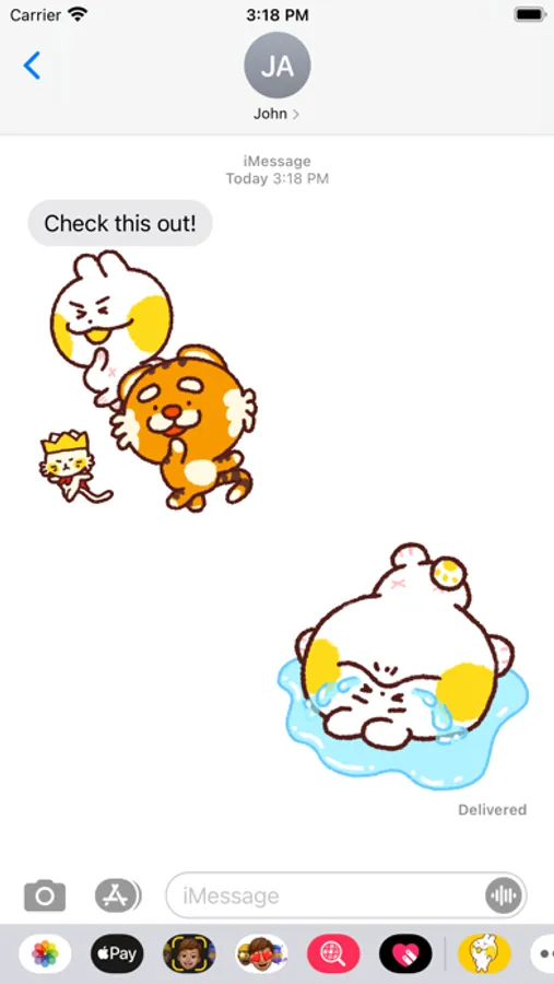 A set of 8 iMessage stickers, fully animated and ready to use in text. Animated by Lillian Xie. Characters belonging to liliuhms llc
