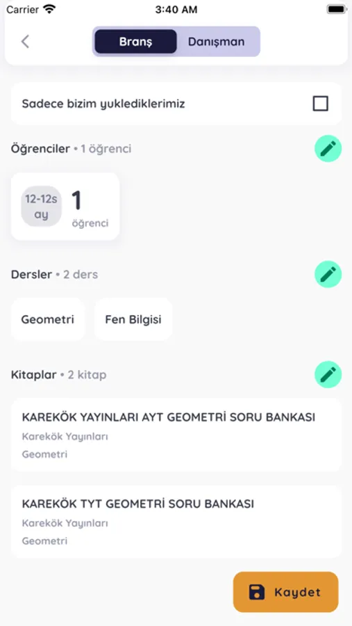 - Ödev sistemiyle ödev verebilir, ödevleri onaylayabilir ve öğrencilerine kitap ekleyebilirler