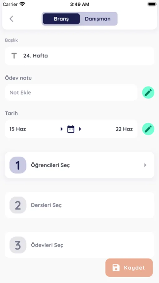 - Ödev takip sistemiyle ödevlerini uygulama üzerinden takip edip sonuçlarını gönderebilirler