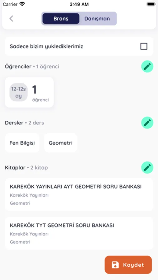 - Ödev sistemiyle ödev verebilir, ödevleri onaylayabilir ve öğrencilerine kitap ekleyebilirler