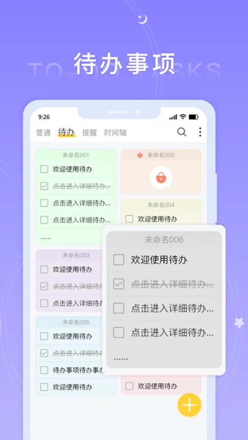 「离线使用」没有网络也可以写便签、查看便签、修改便签,随时随地记录查看