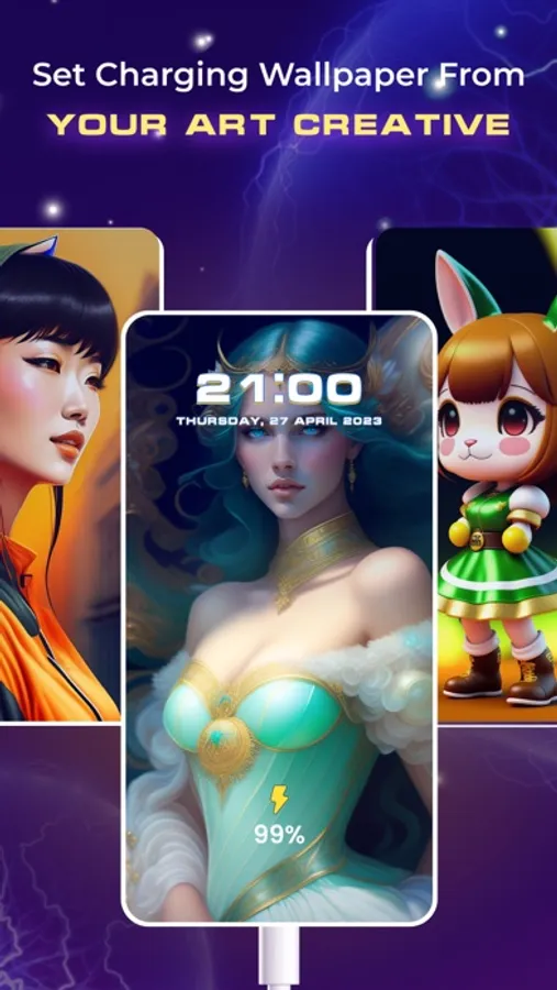 Explore & customize your unique charging wallpaper. Think & imagine about your ideas and then enter a prompt with as much detail as you want for AI to learn. Then All you need to do is watch AI Battery Charging Animation that brings your ideas to life in a second.