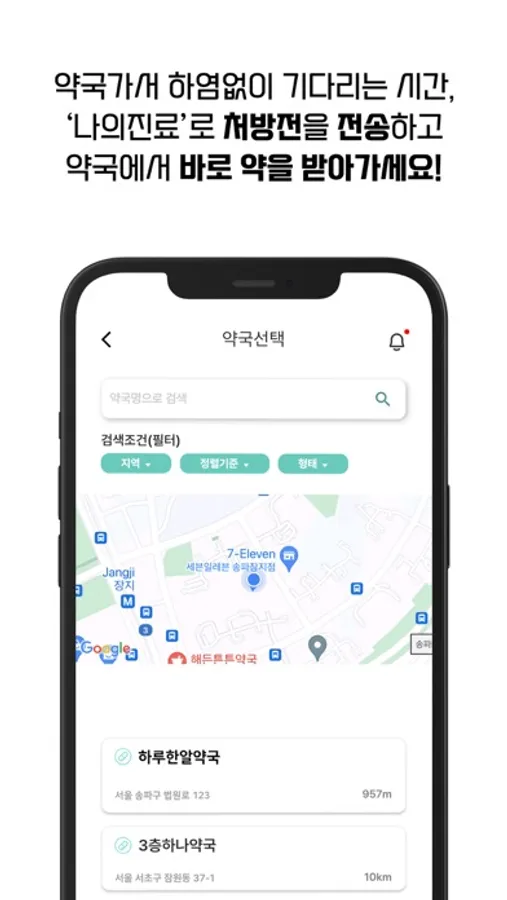 병원 진료 후에 원하는 약국을 선택하면