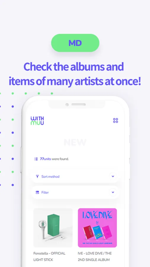 Variety of exciting items - the long-awaited new albums, the official lightsticks to fill the space with lights with artists, various types of MD to share our daily lives and, precicous benefits and unique events are awaiting for you to connect WE(US) with our MUSE.