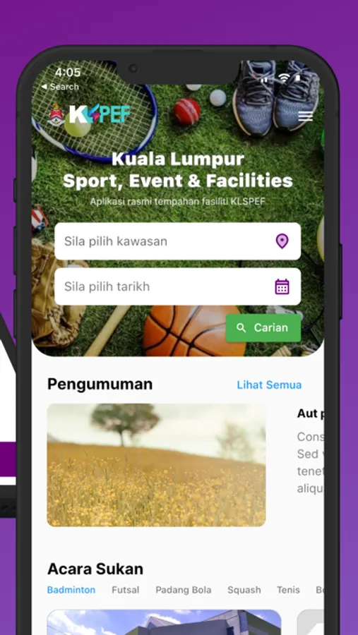 KLSPEF (Kuala Lumpur Sports, Events & Facilities) is a mobile application developed by the DBKL Information Management Department to help the public make bookings of halls and sport facilities under the supervision of DBKL. Users can find all available venue for bookings, make bookings on their preferred venue and make payment online for their bookings.