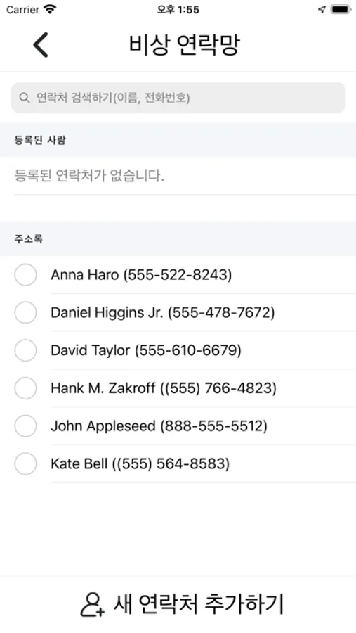 위험상황시 문자를 지인에게 발신하려면 비상연락처를 추가해주세요.