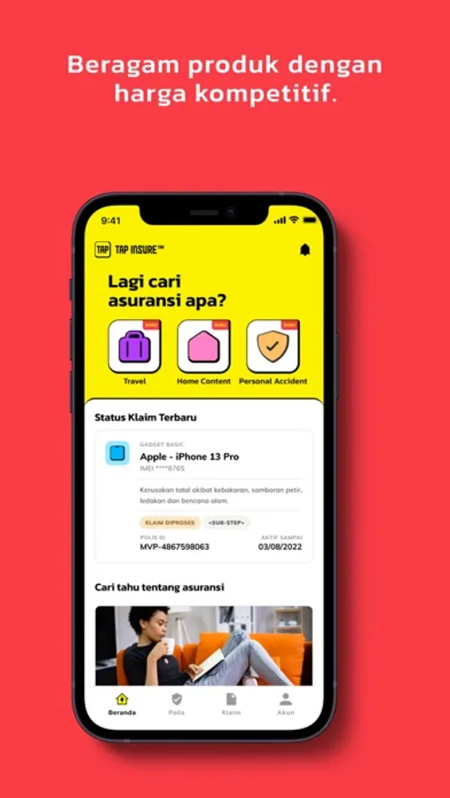 Tap Insure adalah aplikasi asuransi terpercaya yang memudahkan Anda untuk cek polis Anda, mengatur, memonitor dan melakukan pengajuan klaim asuransi secara mudah dan menyenangkan.
