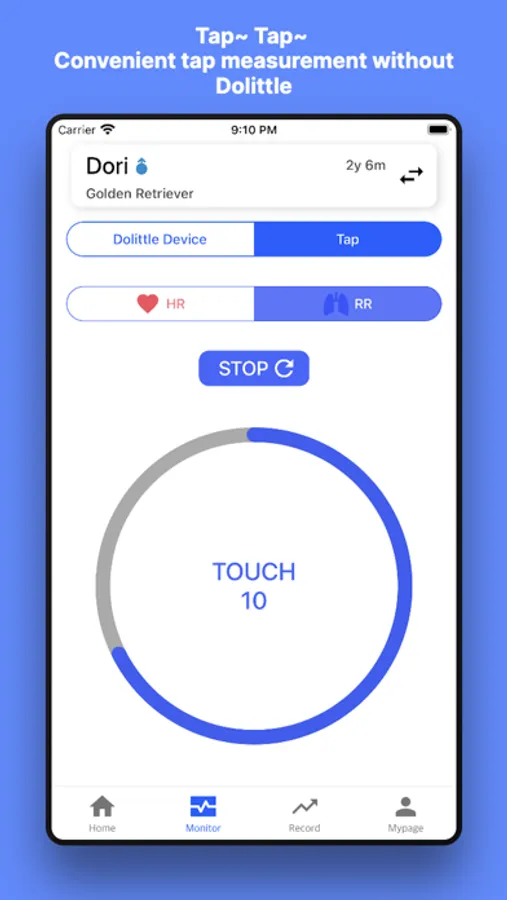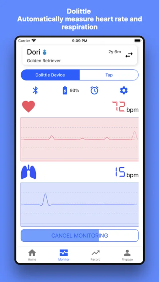 You can easily and conveniently measure heart rate and respiration rate when linked with the companion pet wearable ‘Dolittle’.