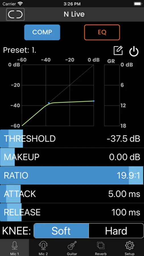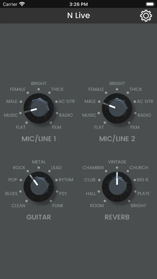With the N-LIVE App, you can edit the parameters on your phone, including the Compressor, EQ, and Stereo-Link for the Mic/Line channels; the Amp, Delay, and Modulation effects for the Guitar channel; and the Reverb. There’s also an Easy Mode in which you can simply choose from the built-in presets for each channel.