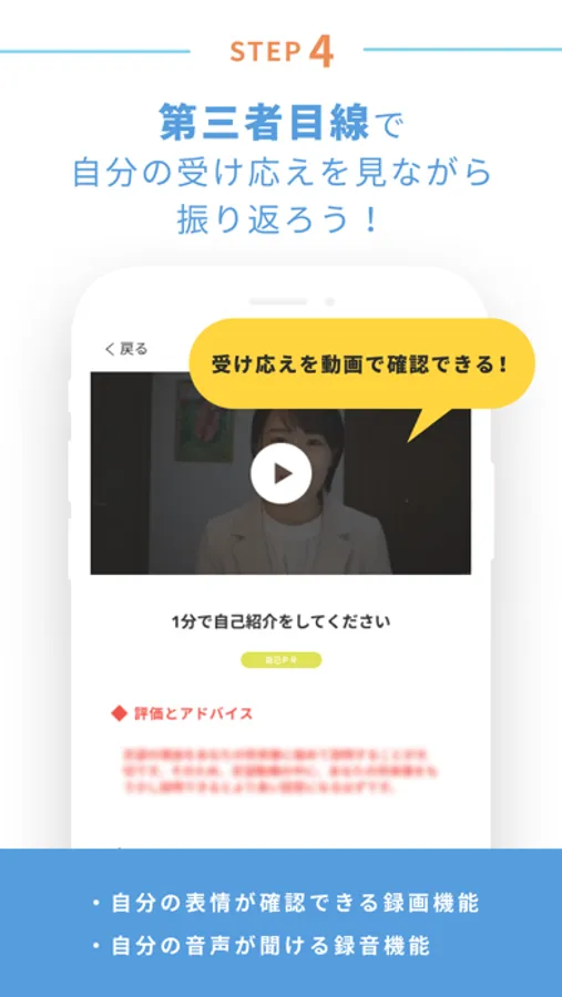 ・録画+録音機能で自分の音声と表情の振り返りができる