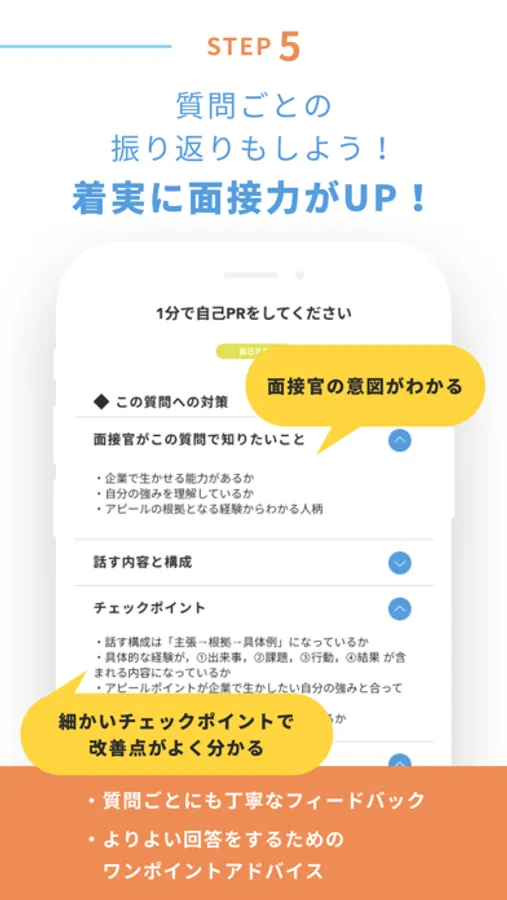・面接官の意図や自分の回答のチェックポイントがわかるワンポイントアドバイス