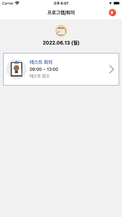 오늘 참석해야하는 프로그램/회의를 확인하고 해당 프로그램에 참석 처리 할 수 있는 프로그램입니다.