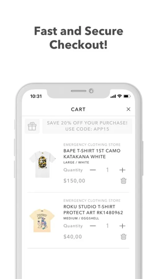 Improve your shopping experience with the Emergency Clothing Store App. Be the first to see our latest collections, enjoy in app only discounts, make a wishlist of your favorite items and keep all of your orders and shipping information in one place.