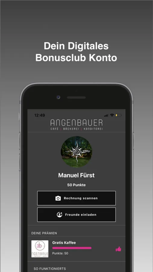 Die Konditorei Angenbauer-App ist dein digitales Treueprogramm! Du kannst ganz einfach durch unterschiedliche Aktivitäten Punkte sammeln und diese gegen tolle Prämien einlösen.