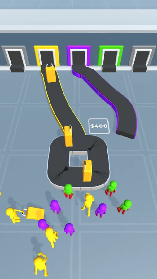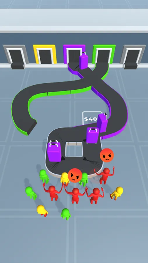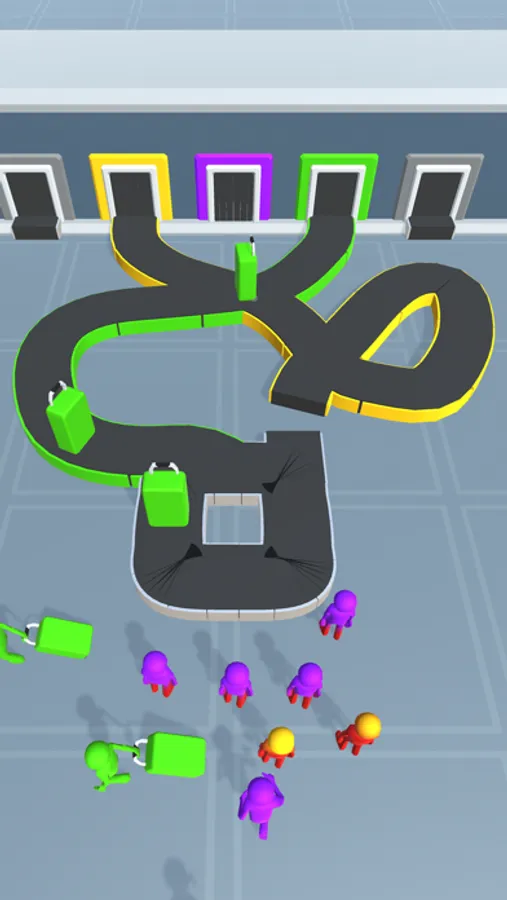 Manage airport baggage claim area! Connect lanes according to the passenger colors and deliver the luggage.