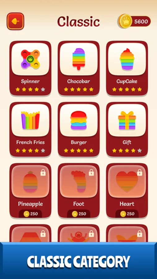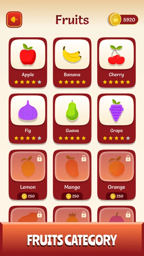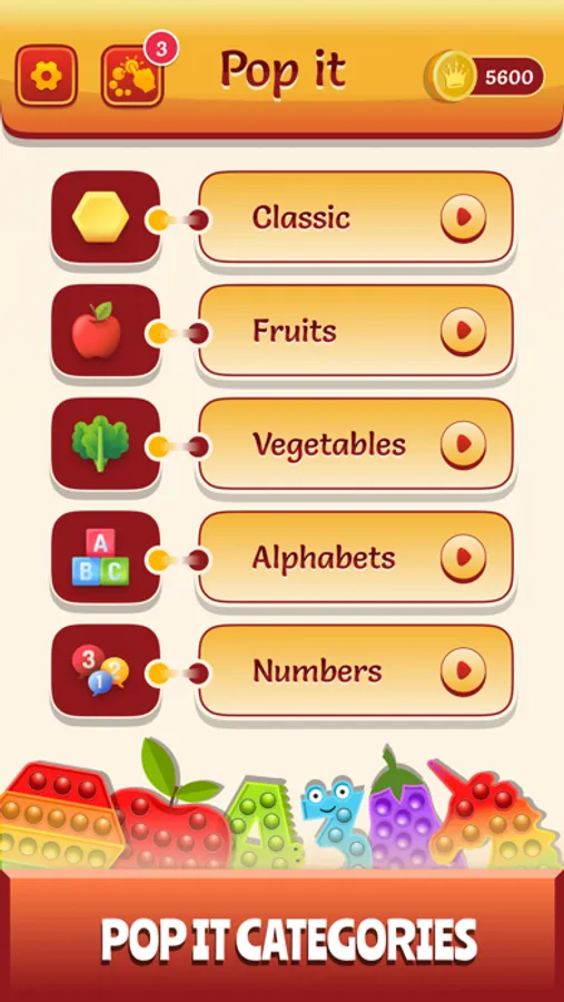 You can now play with shapes of different categories. - Classic - Fruit - Numbers - Alphabet - Vegetables