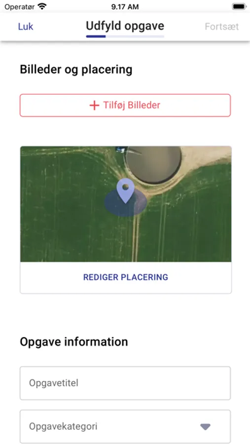 Using camera and location, new tasks can be created on the road along with description and categorization.