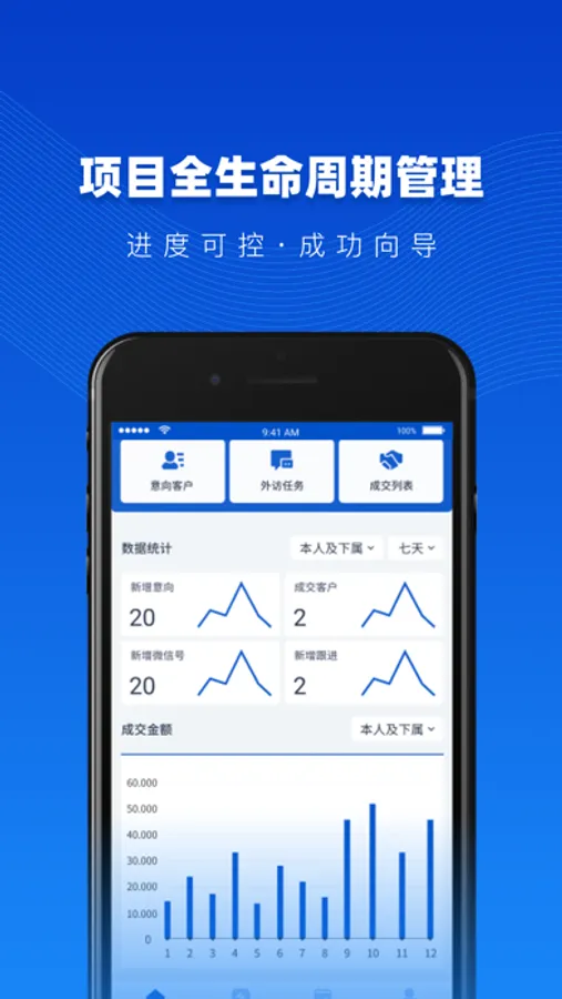 进行管理和调整。销售代表可以更方便及时地获取所需信息,更好地完成指定任务。减少您不必要的手工劳动,信息录入更准确全面,提高工作效率,并为管理者智能决策提供依托。与您的团队及时有效的沟通和协作,得到必要的支持和指导,满足客户的个性化需求,提高开单速度。