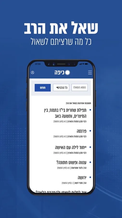 שאל את הרב: באמצעות האפליקציה תוכלו להתחבר למאגר שאל את הרב הגדול בישראל ולעיין במאות אלפי תשובות שנשלחו למערכת.