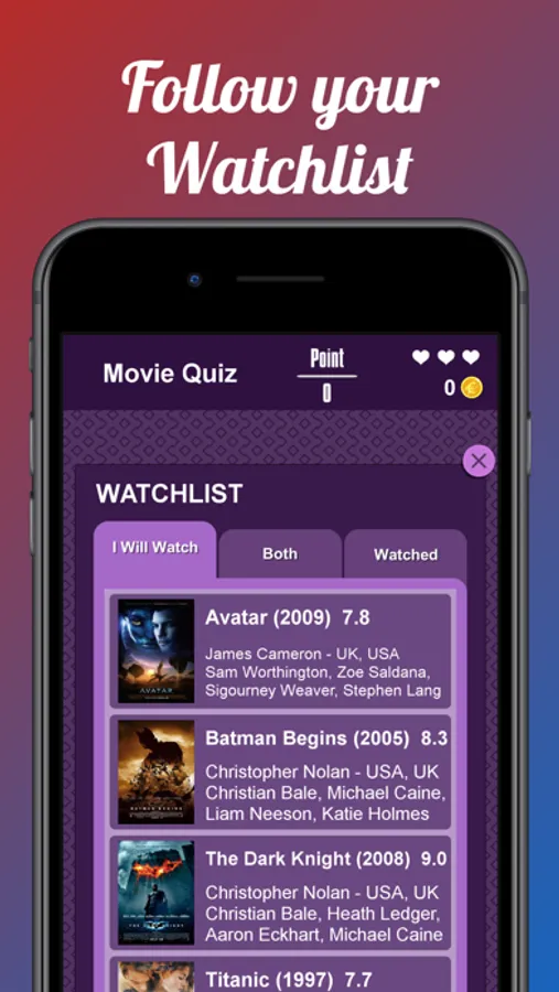 Come on, for free, “Movie Quiz & Watchlist” and join this pleasure!