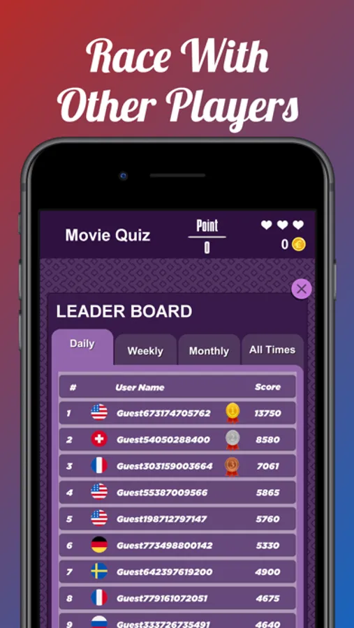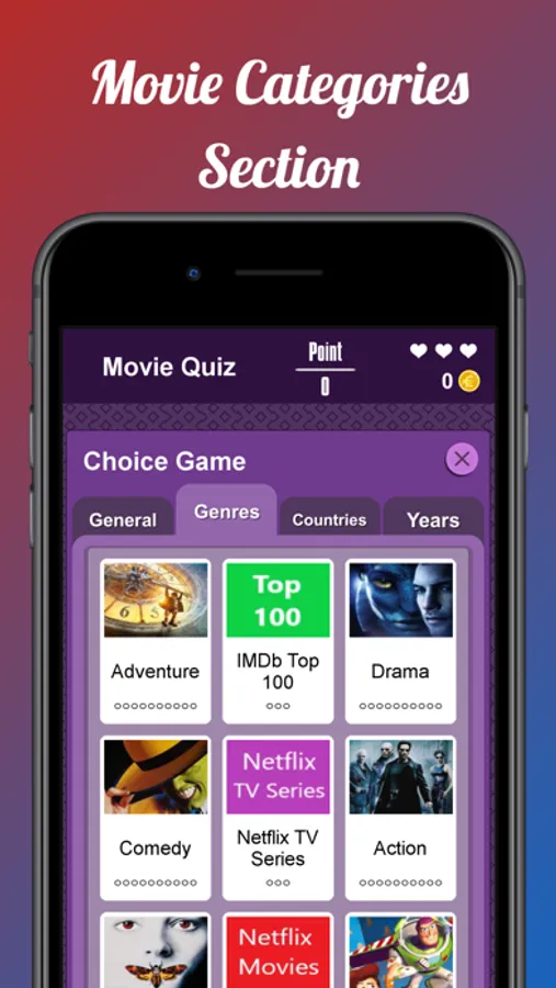 - Participate in competitions between current cinema films, new categories and TV series with the frequently updated "Movie Quiz & Watchlist" application.