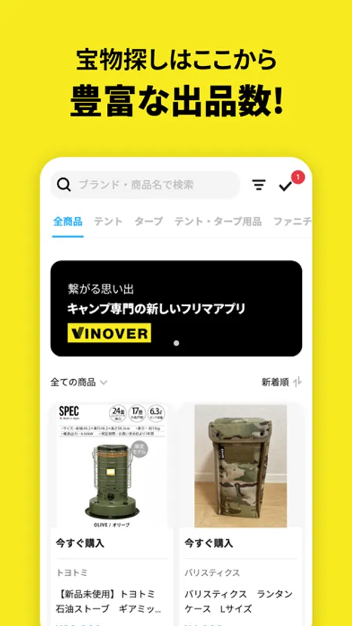 キャンプフリマアプリVINOVER(ヴィノバー)