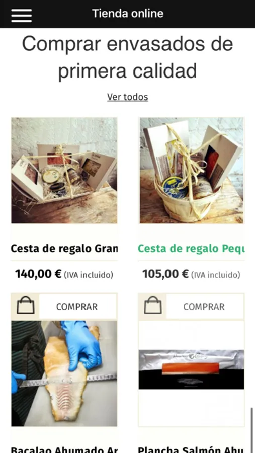 Nuestra tienda Online le permite comprar Pescado, Marisco y otros productos Envasados como Ahumados y conservas de una forma cómoda y sencilla. Comprar los mejores productos del mar está al alcance de todos.
