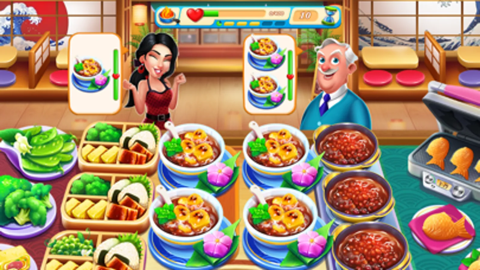 In your culinary story, you are serving plenty of famous dishes like Sushi, Yaki Yaki, and Sugoi Bento; Making some tea, preparing ice cream, many Asian foods, burgers, seafood, baking cupcake, making coffee, and plenty of fast-food... You are gonna discover countless hidden recipes in your exceptional restaurants!