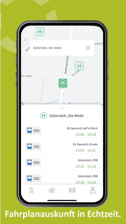 Mit der neuen Stadtbus-App fahren Sie schnell und bequem durch Gütersloh. Nach Ihrer Anmeldung sind Tickets und mehr digital erhältlich. Auch das befristete 9-Euro-Ticket kann über die App erworben werden. Eine Fahrplanauskunft und Haltestellenübersicht mit Echtzeitdaten und Meldungen finden Sie übersichtlich und tagesaktuell.