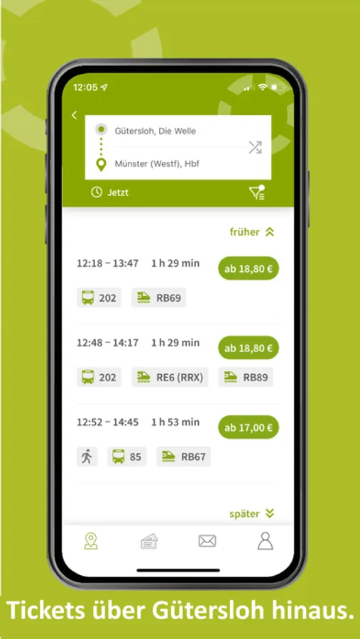 Ticketangebot: in der Ticketübersicht finden Sie schnell Ihren optimalen Fahrschein. Bei einer Kontrolle können Sie einfach Ihr Ticket in der App öffnen. Mit einem Klick ist ein erneuter Kauf eines bereits abgelaufenen Tickets schnell möglich. Zum Start der App ist das Ticketangebot auf Gütersloh beschränkt. Aber in Kürze können auch Tickets über Gütersloh hinaus erworben werden.