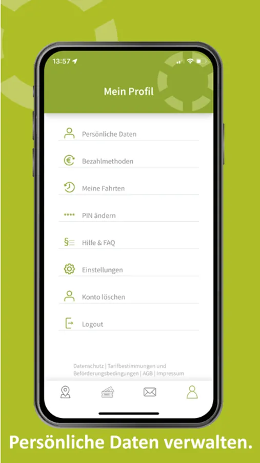 Personalisierter Bereich: Hinterlegen Sie Ihre Daten, favorisieren Sie Ihre bevorzugte Bezahlmethode und haben Sie den Überblick über Ihre letzten Fahrten.