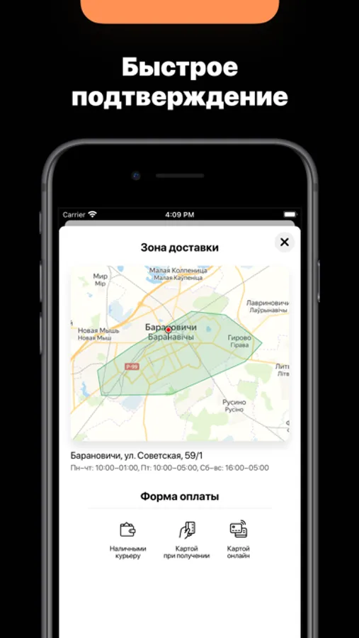 — Быстрый заказ с мгновенным подтверждением через приложение.
