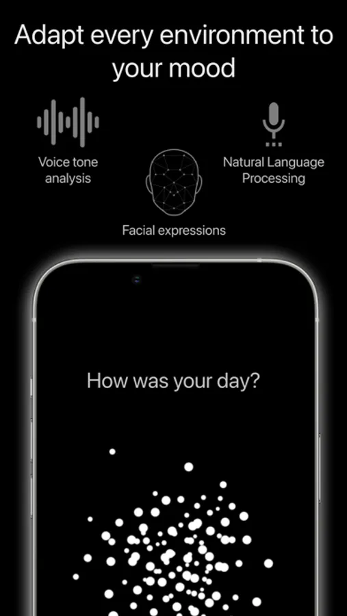 Interaction with the app is as natural as possible, just a few words spoken to your phone will allow the machine learning algorithm to generate what ambient fits your current status the best.