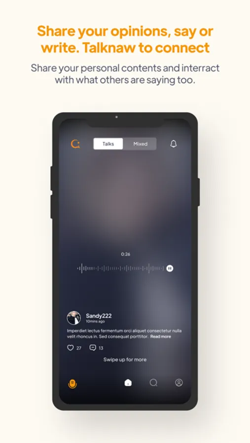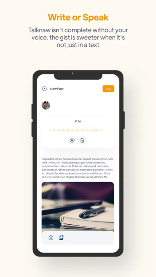 Talknaw (from Campustalkative) allows you to feel free while using your voice to engage and connect with exciting friends and communities that have similar interests and gist as yours. Talknaw is incomplete without you speaking. Here are features to enhance your experience: