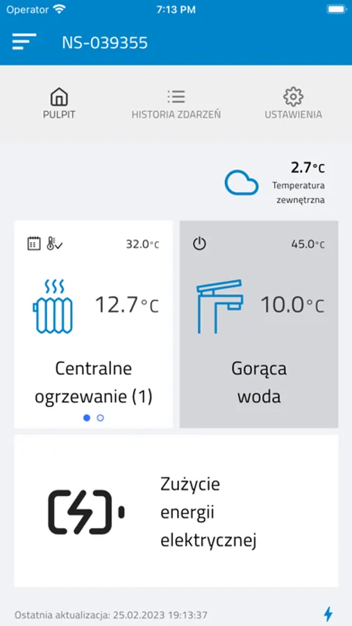 Aplikacja użytkownika do zdalnego zarządzania pompą ciepła MultiTherma.