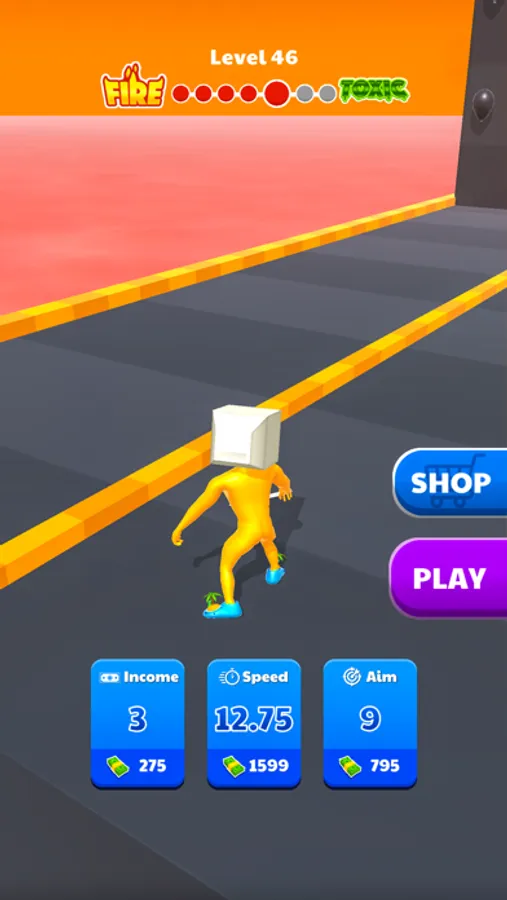 Upgrade your character's speed, income and aim precision in every level and be a better runner.