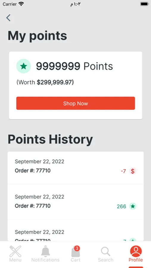 - Create/log into an account to keep track of your meal purchases.