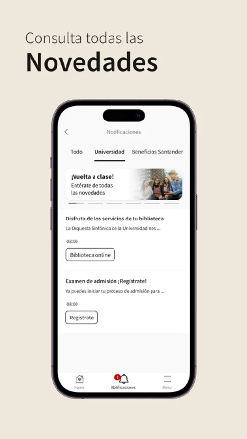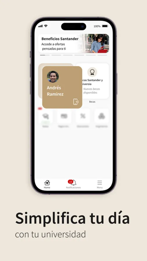 3.Además, tienes la opción de suscribirte a "Beneficios Santander", lo cual te permite acceder a becas, bolsas de trabajo, programas de emprendimiento, descuentos y más.