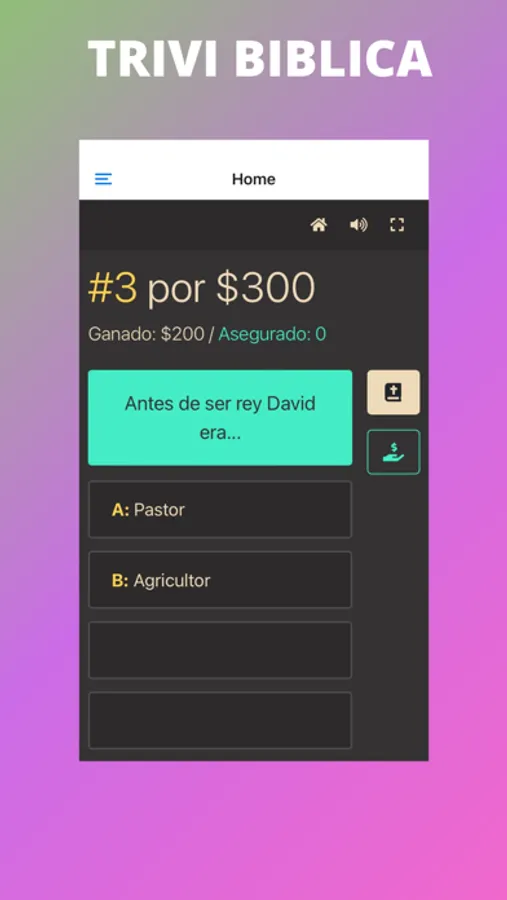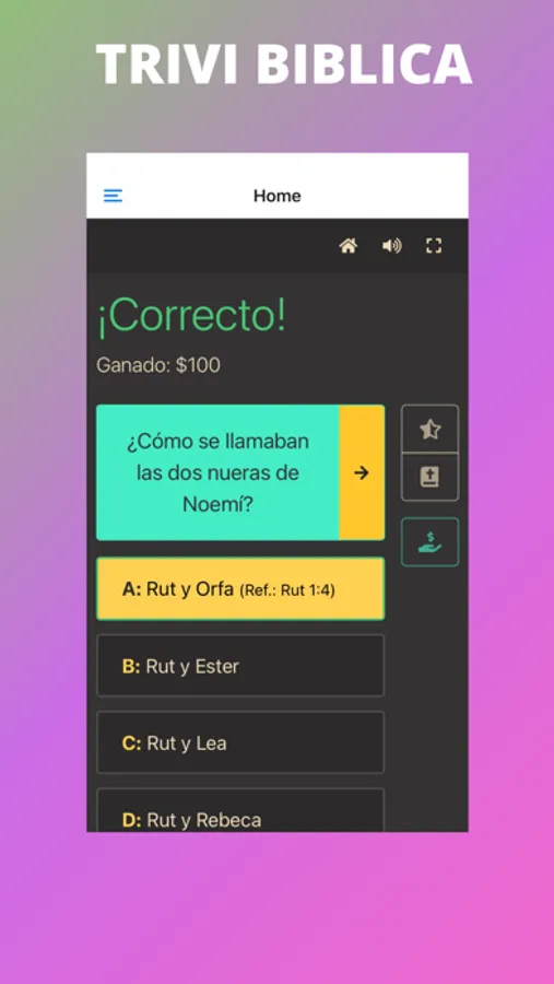 En este juego, todo lo que necesitas hacer es encontrar la respuesta correcta a una pregunta bíblica. Los cuestionarios son de todos los libros de la Biblia, como Génesis, 2 Crónicas, Daniel, Éxodo Esdras, Oseas, Levítico, Nehemías, etc.