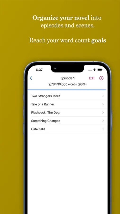 Subscribe to Novelrunner+ to get unlimited projects (the base app allows for up to two full projects), color themes, advanced project creation, analytical graphs, and more!