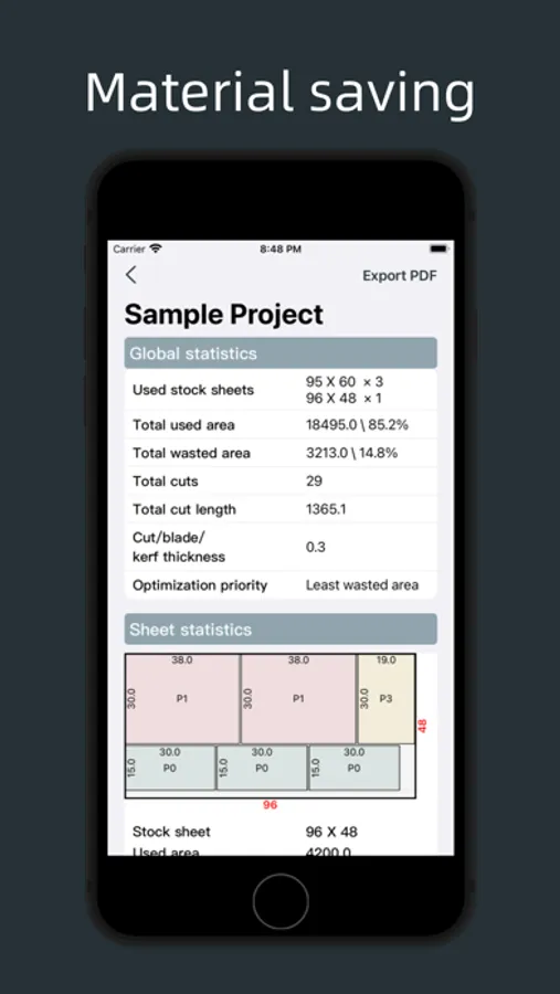CutList Opt is an application optimized for sheet cutting. It can help companies and individuals to reduce raw material waste, reduce errors, save time, save labor and save cost.