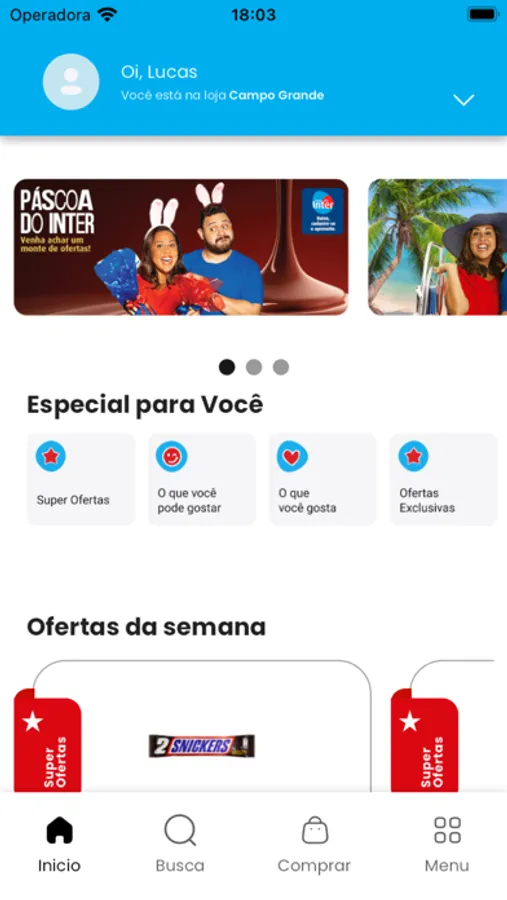 - Vitrine de Ofertas: seus produtos favoritos a um toque de distância. A vitrine de ofertas irá exibir os produtos que você compra e que estão em promoção e recomendações de produtos de acordo com o seu perfil de compras.