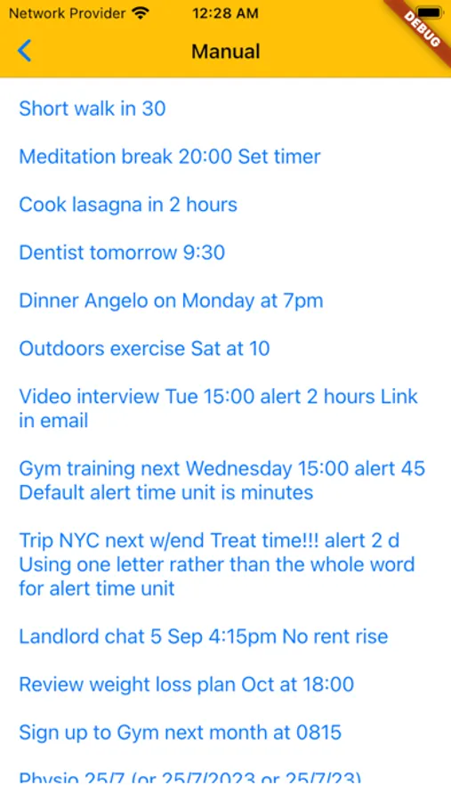 Natural language parsing (NLP) is being used for understanding the due date and time ("in", "on", "at" are being suppressed - "at" is only required when specifying start time without :).